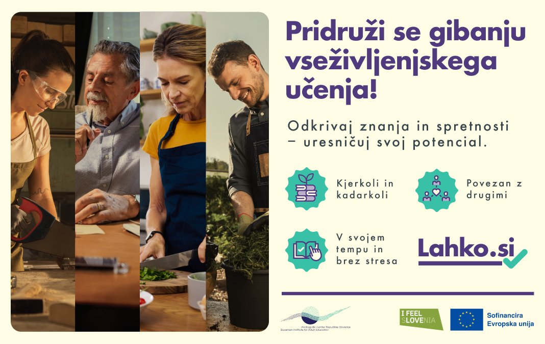 Projekt vodi Andragoški center Slovenije, sofinancirata ga Republika Slovenija in Evropska unija iz Evropskega socialnega sklada plus (ESS+).